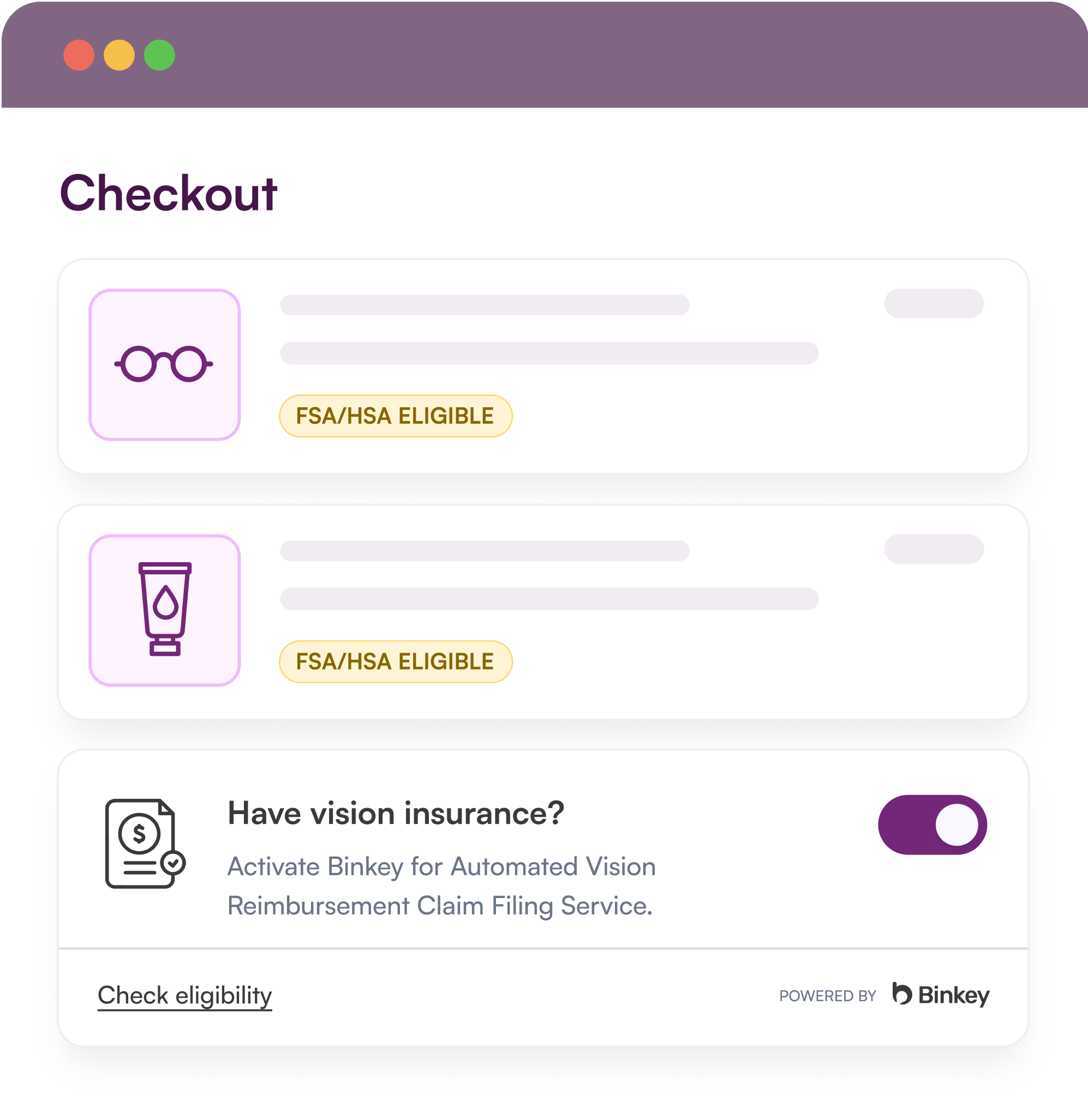 Binkey helps online vision merchants process out-of-network insurance claims for all US vision plans, attracting more consumers and maximizing their benefits.